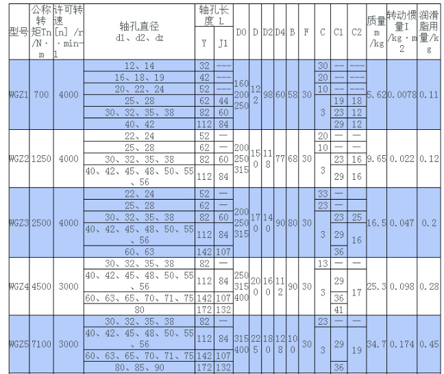 WH型滑塊聯軸器規格表和圖紙