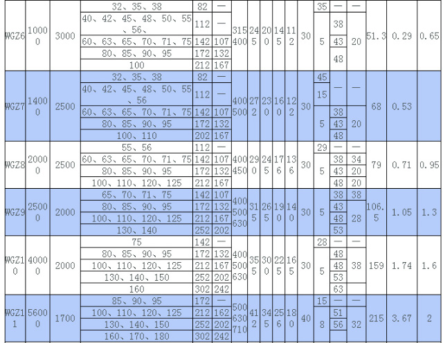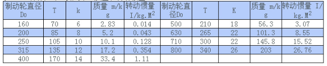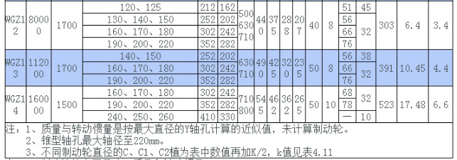 WGZ型帶制動輪鼓形齒式聯軸器制動輪的主要尺寸、質量和轉動慣量/mm: